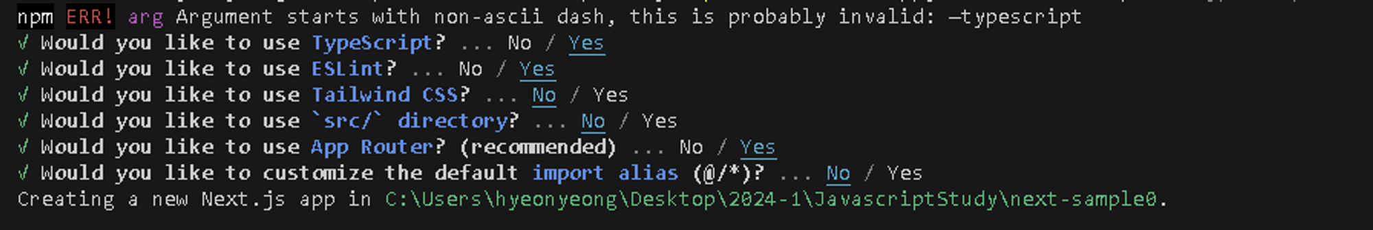 자동 생성 : npx create-next-app@latest next-sample0 —typescript