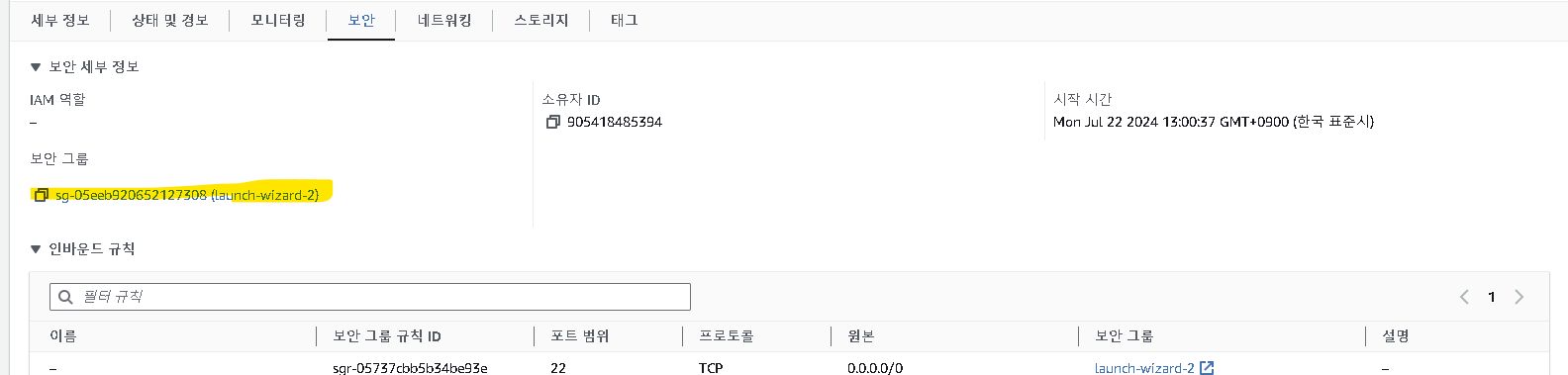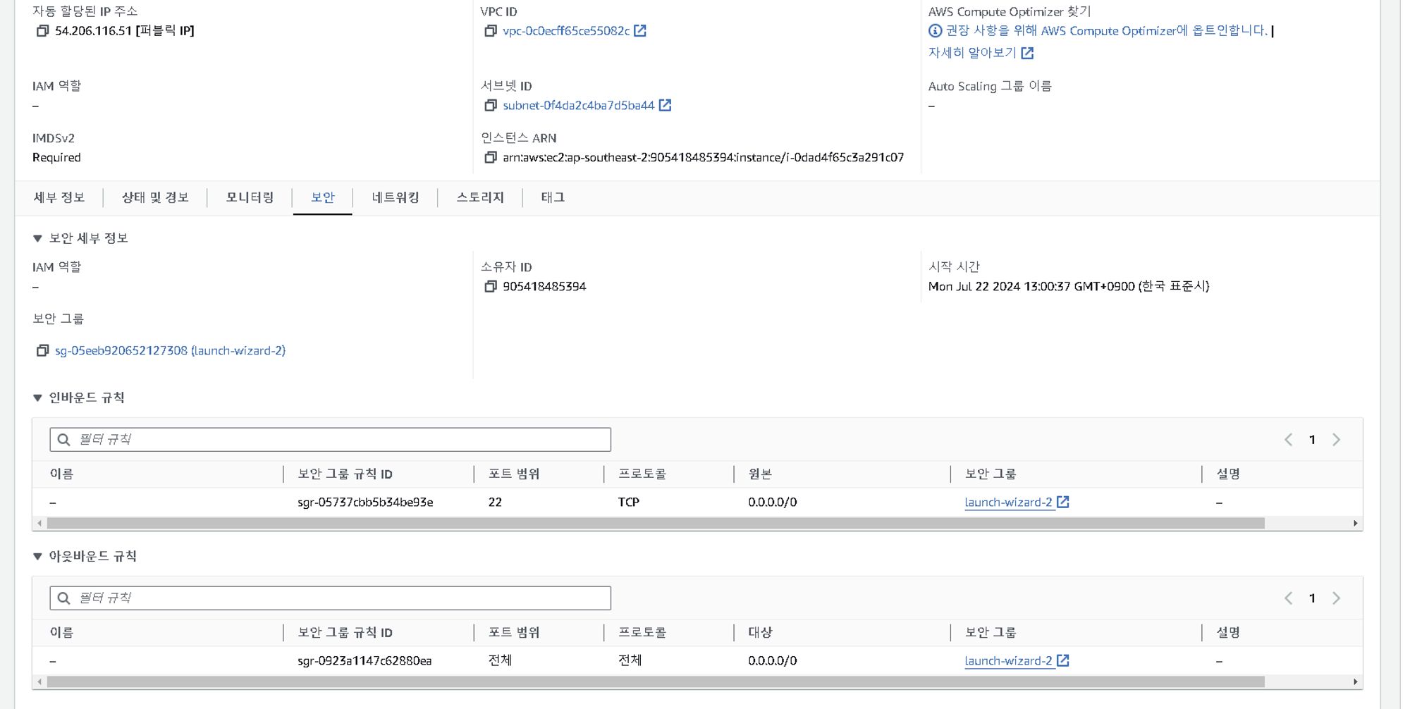 이렇게 보안 그룹 설정해주고 restart를 해주면 실행된다.