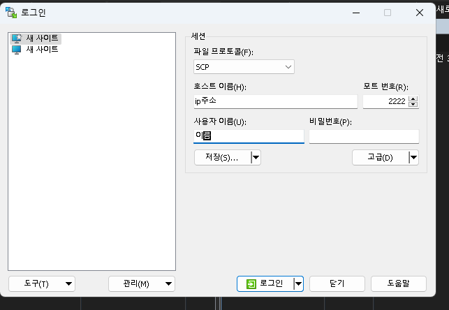 cmd에서 ssh ip주소:2222 를 입력하면 된다.