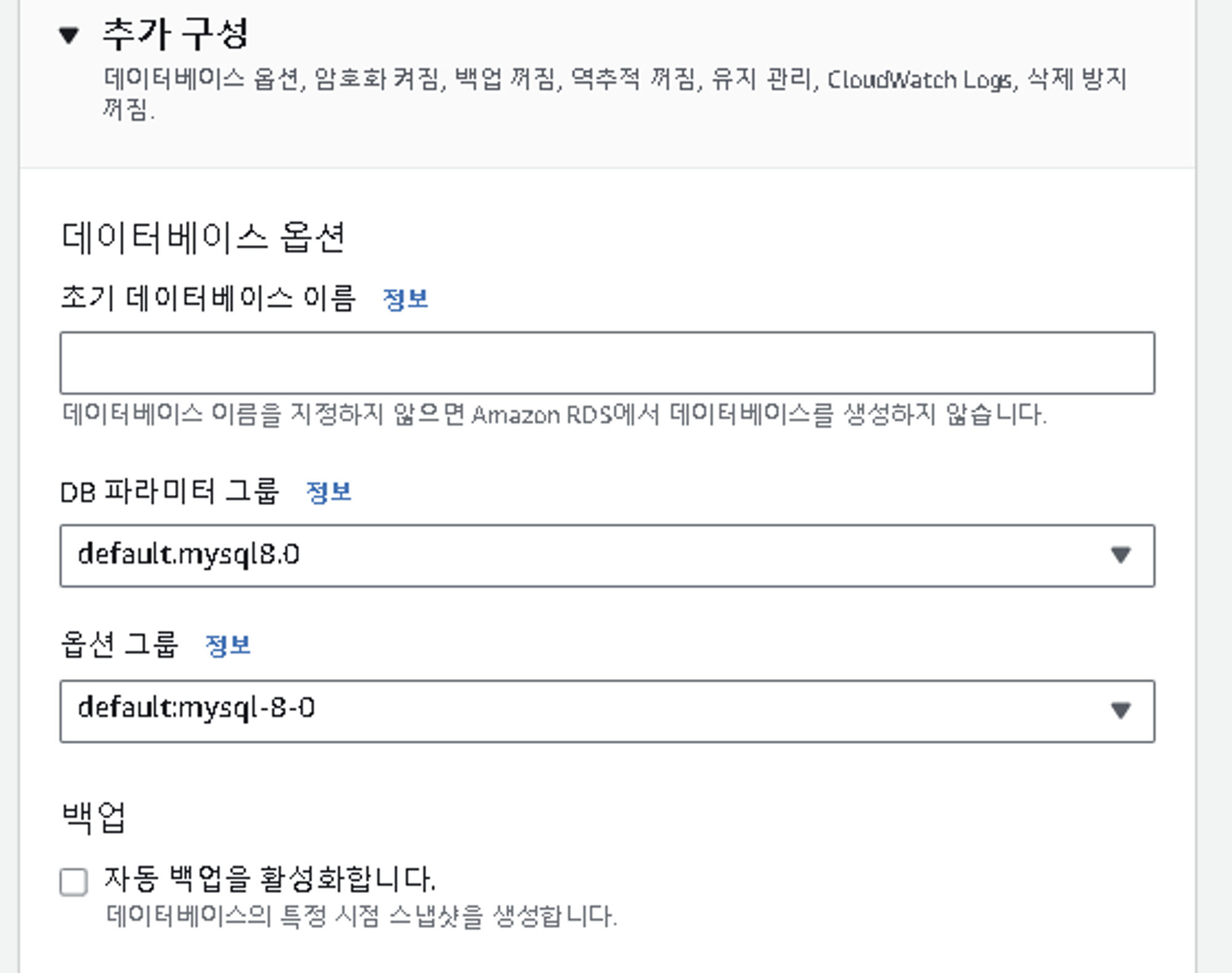 • hostname : aws에서 아까 얻은 endpoint