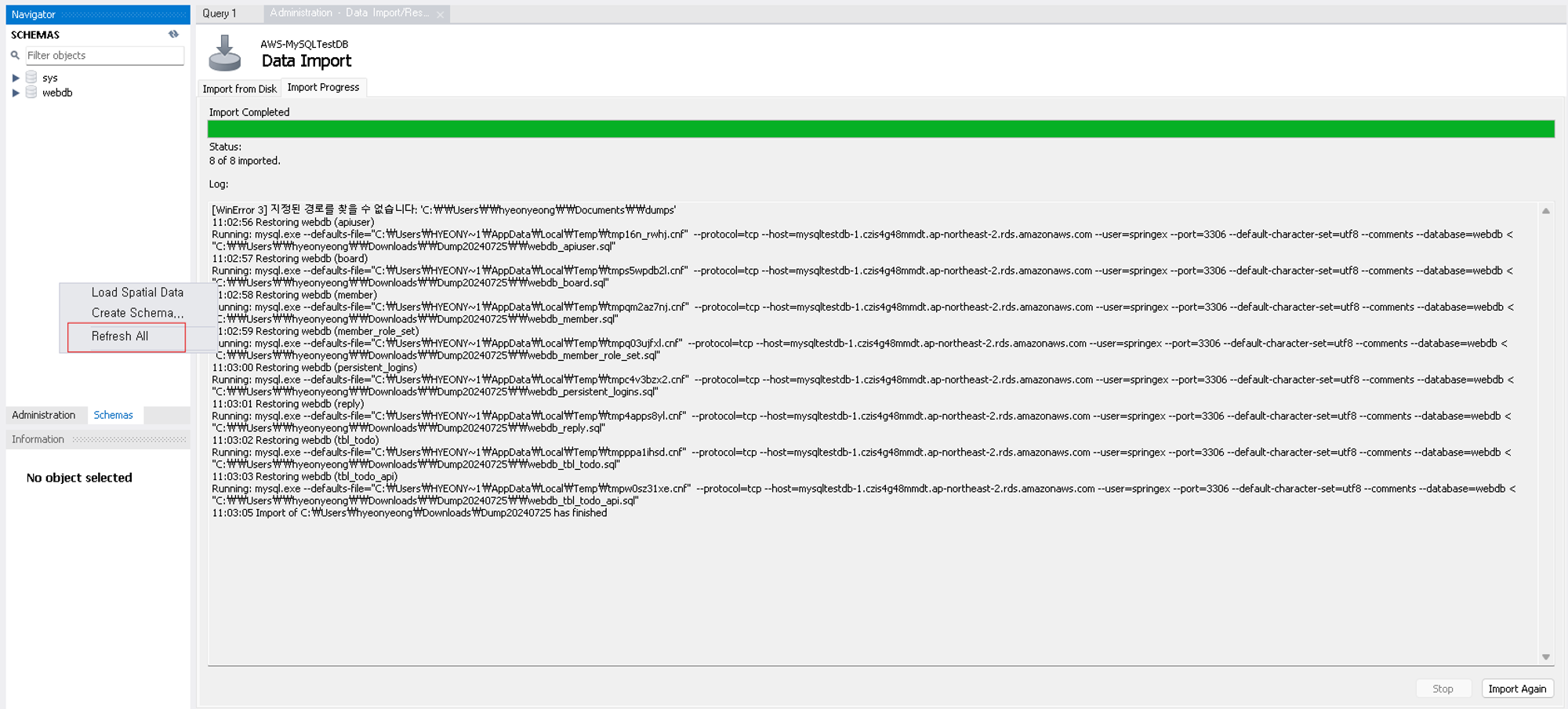 이 dump 파일은 뭔지 모르겠지만.. 일단 받은거라..,. 넣었더니 됐다ㅠ