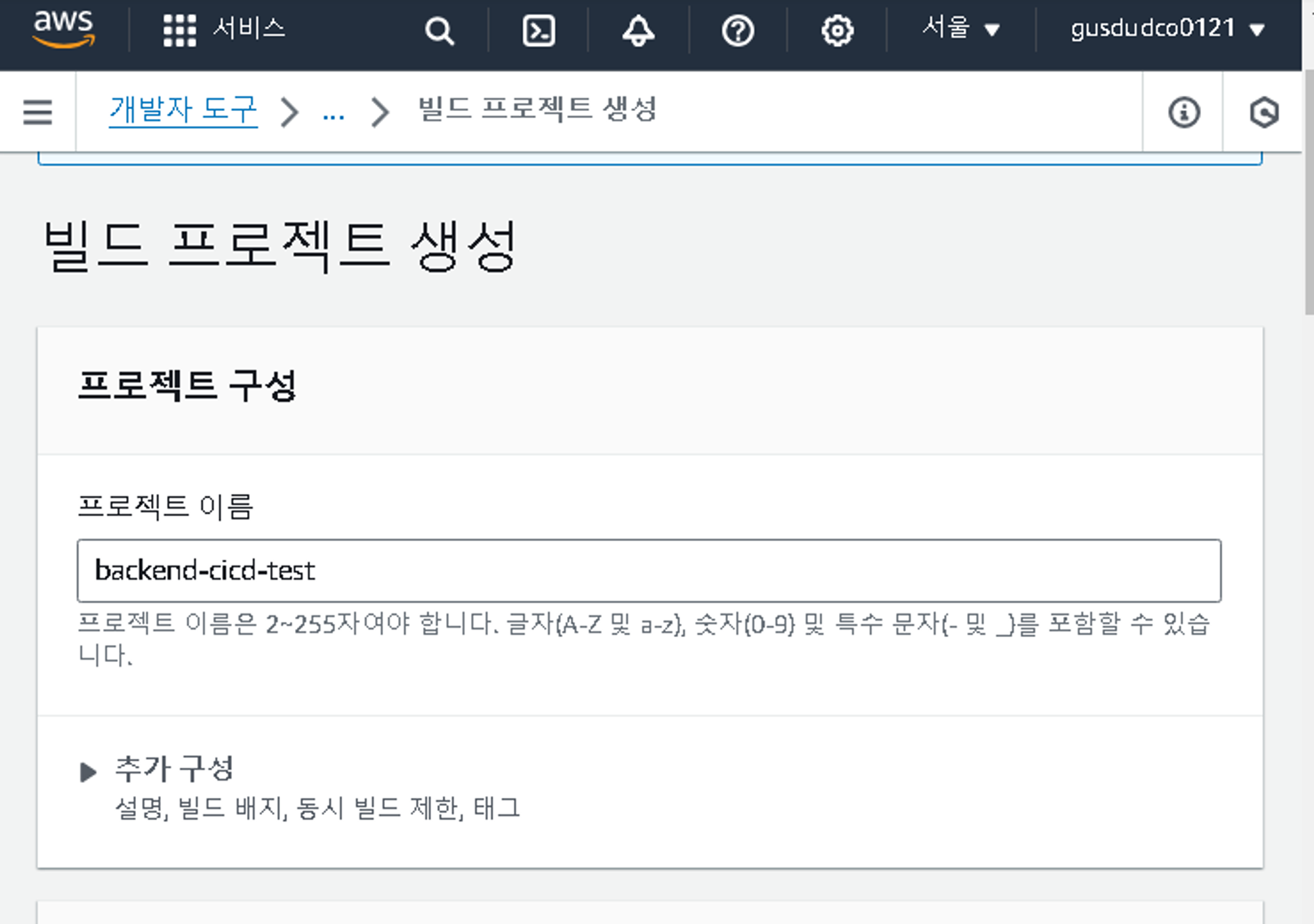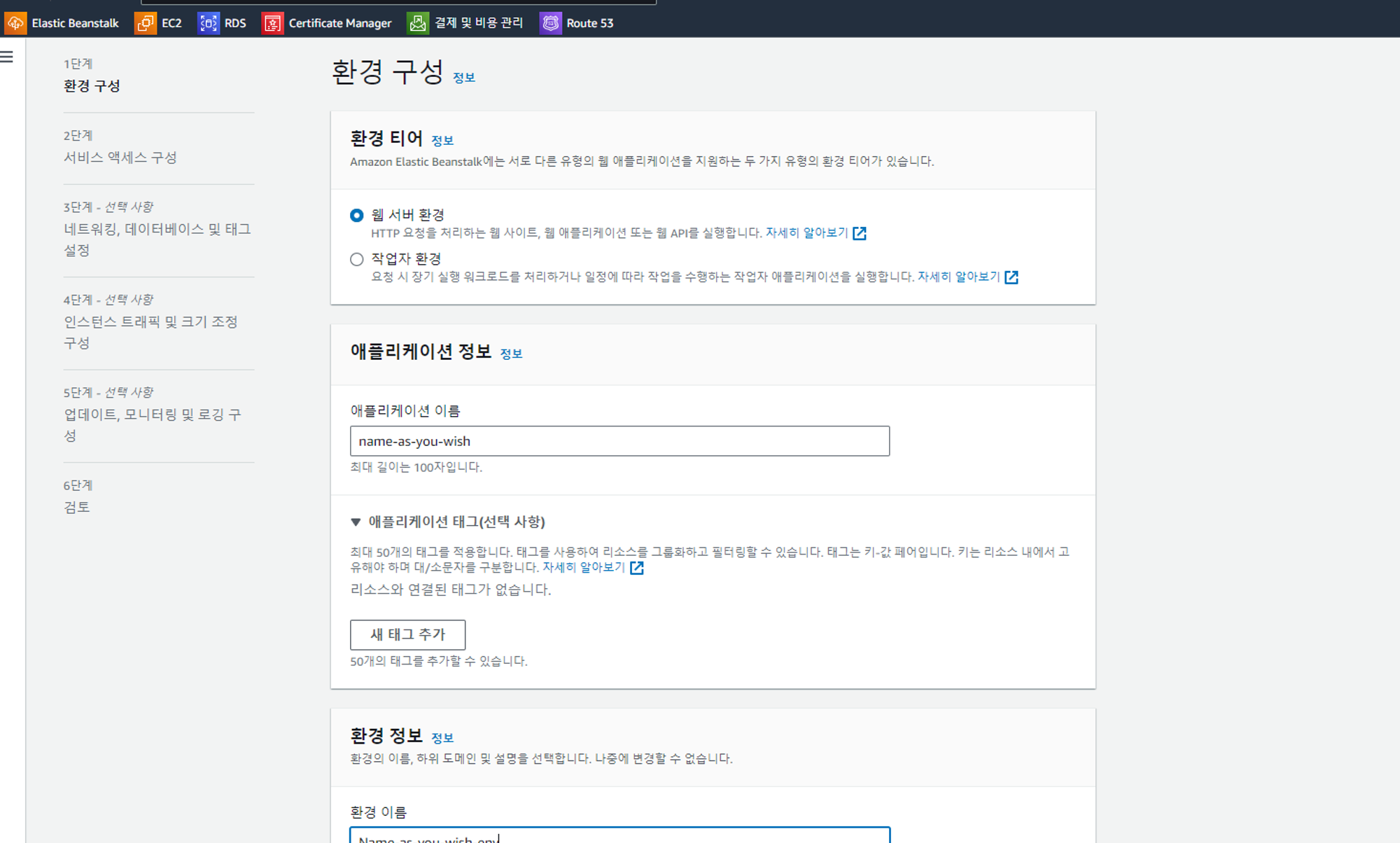 - 1단계 이름만 설정 후 넘김