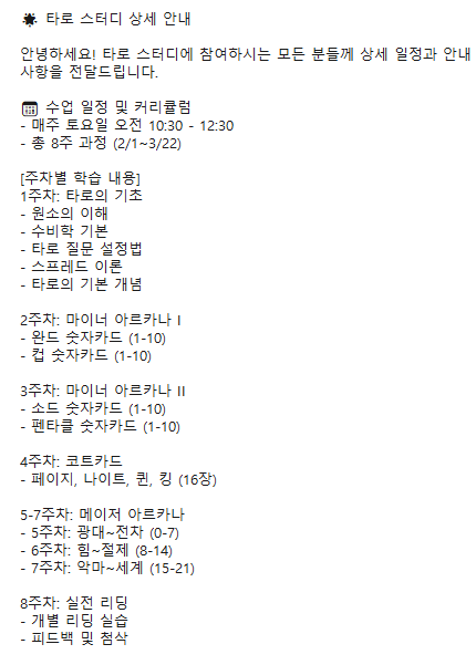 💬 스터디는 끝났지만, 배움은 계속된다! 천천히, 하지만 꾸준히— 타로는 계속된다 🔮✨
