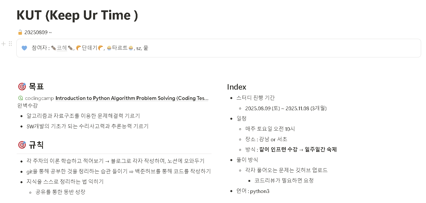 실제로 나는 KUP라는 스터디 그룹을 만들 때, 목표·기간·규칙을 미리 정해두고 시작했다.