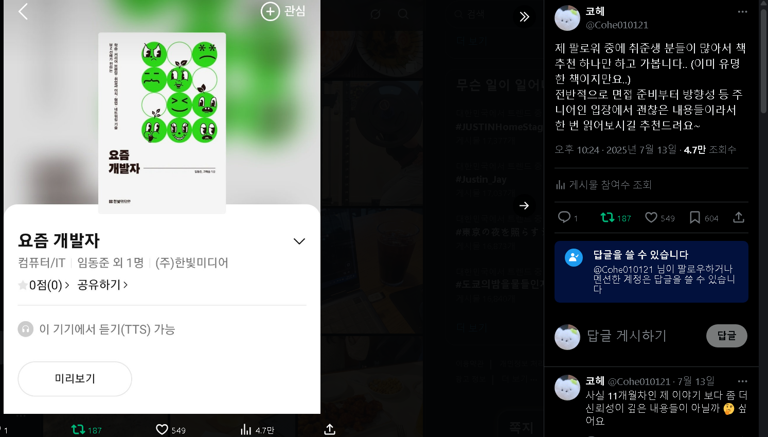 그때 집 구석에 박혀있던...《요즘 개발자》를 만났다. 그냥 왕창 유명한 책이라는 느낌이 있었는데 막상 제대로 읽어보지 못했던 것 같다.