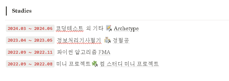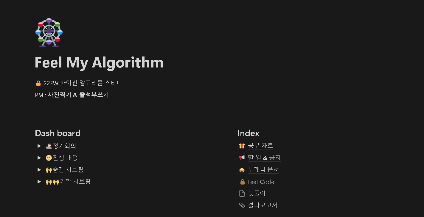 참고로 저는 스터디를 아래와 같이 정리해서 노션에 올려두었어요
