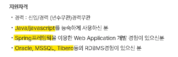 - 아~ 지원자격을 보니까 자바랑 스프링 쓰는 팀이군요!