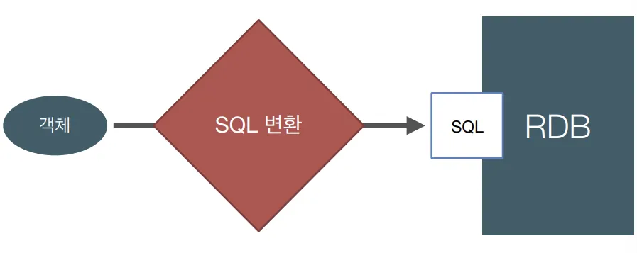 객체를 RDB에 저장하려면 객체를 그에 맞춰 SQL(INSERT)로 변환하고, SQL을 통해 RDB와 통신해야 해요. RDB에서 객체를 조회할 때도 SQL(SELECT)로 조회한 다음 객체로 변환해야 합니다