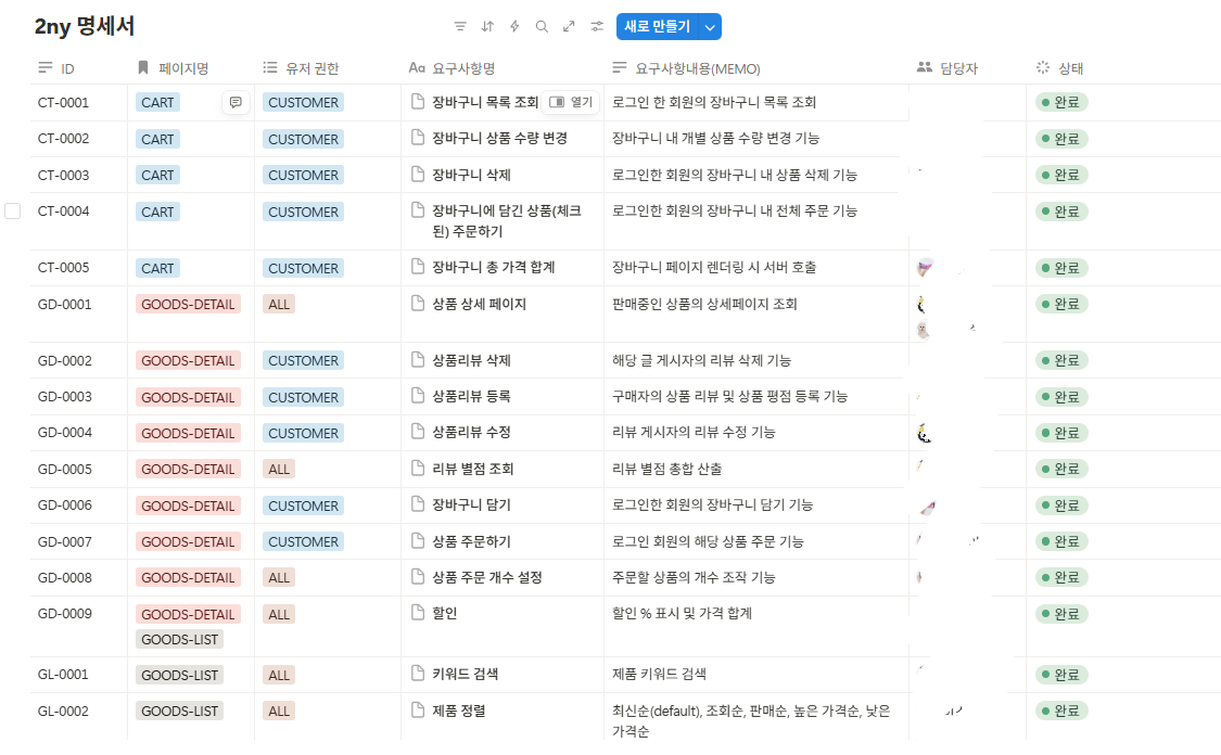 - 요구사항 명세서는 업무 단위로 쪼개어 JIRA처럼 정리했어요.