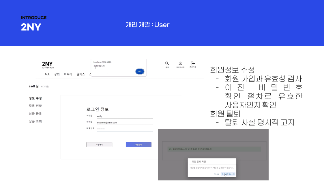 이건 제가 맡았던 회원 정보 수정 및 탈퇴 기능 관련 화면입니다.