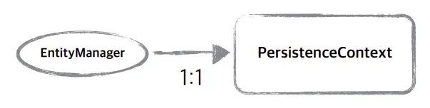 - EntityManager 1개 → 영속성 컨텍스트 1개 (1:1)
