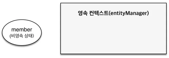 아직 영속성 컨텍스트에 등록되지 않은, 그냥 자바 객체 상태예요. 이와 같이 회원 객체를 생성만 해둔 상태라고 보면 됩니다