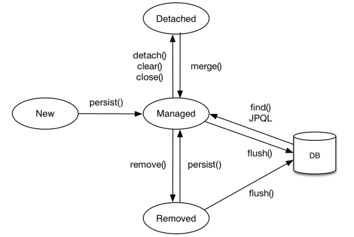 ✍️ 참고: Hibernate 기준으로는 new 상태와 removed 상태를 굳이 구분하지 않습니다.