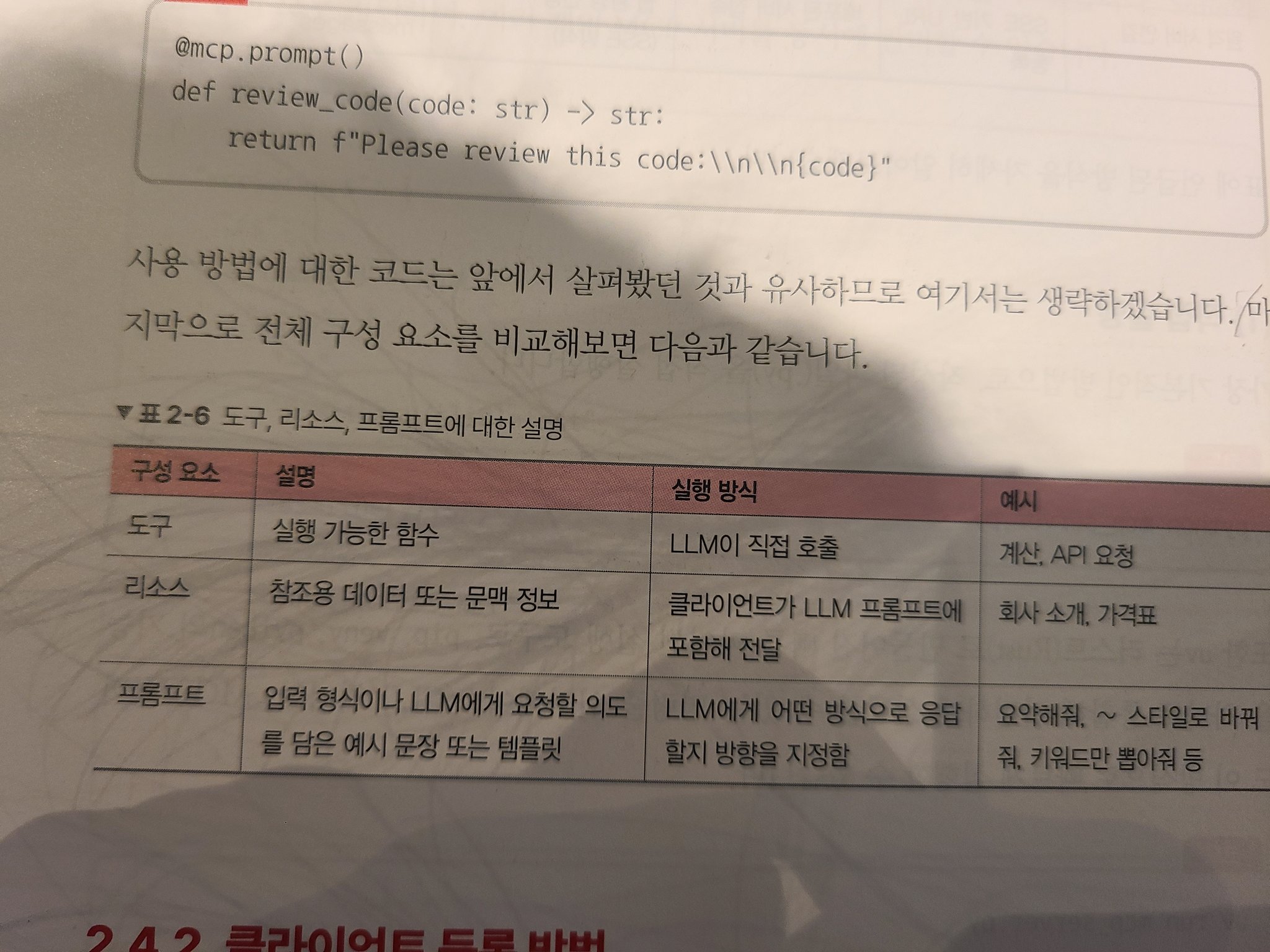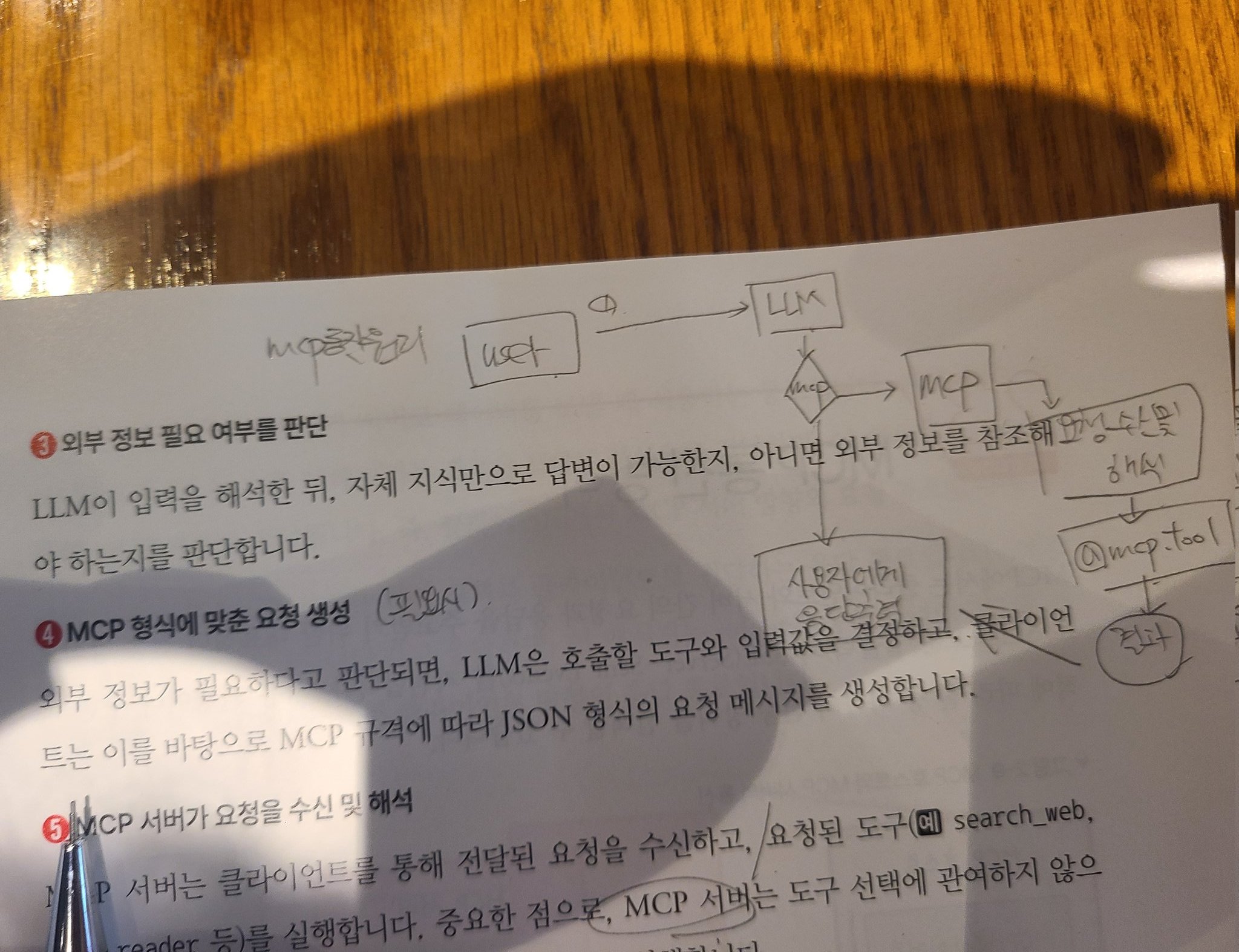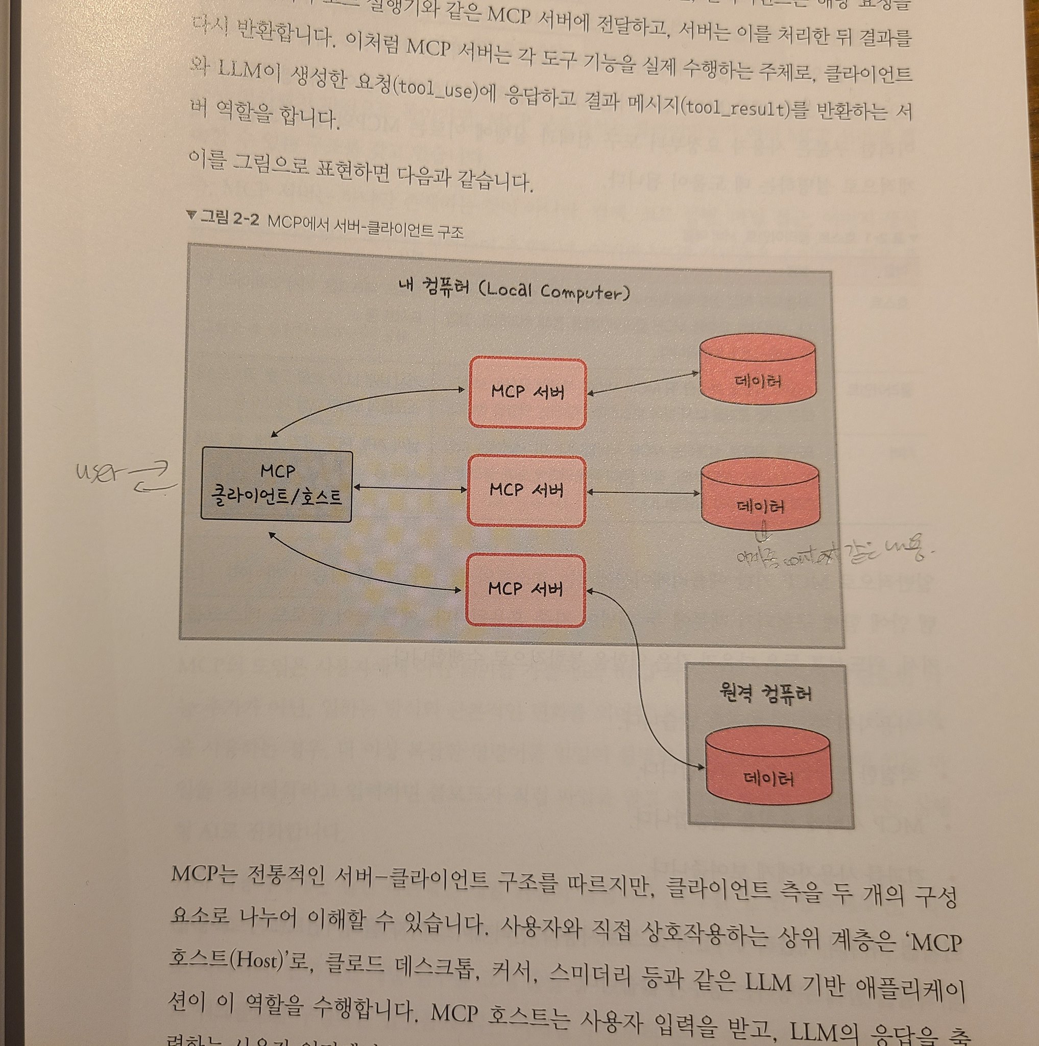 책 펼치자마자 "MCP는 뭐지?" 했어요. Model Context Protocol의 줄임말이라고 하더라구요.