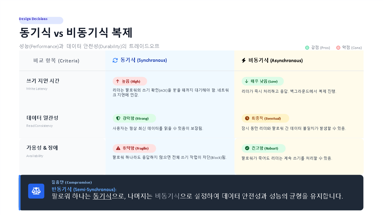 단점: 팔로워가 뒤처질 수 있음 (복제 지연)