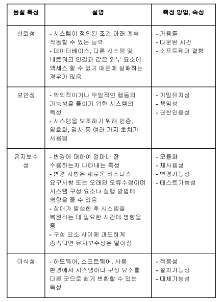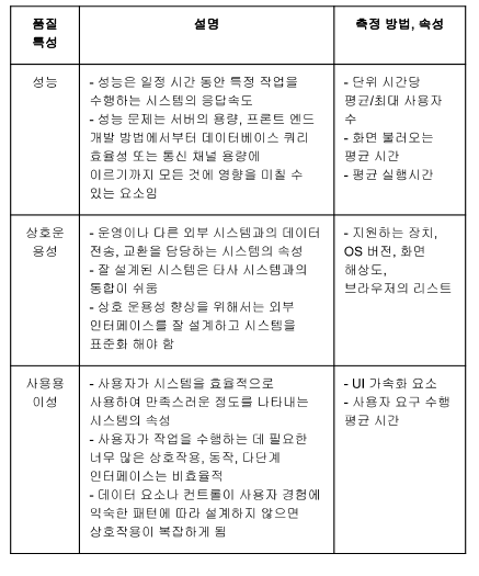 6-24 ISO 25010에서 정의하고 있는 소프트웨어의 기능 외적인 품질은 무엇이 있는지 나열하고 설명하라