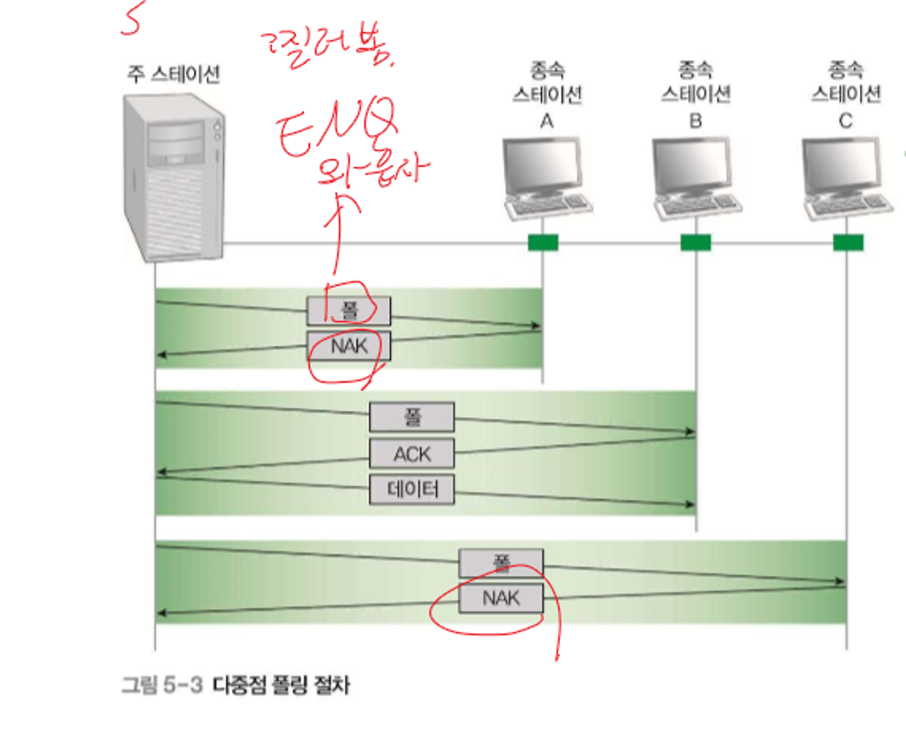 - 주 스테이션이 다수의 종속 스테이션에 보낼 데이터가 있는지 여부를 확인해 데이터를 전송