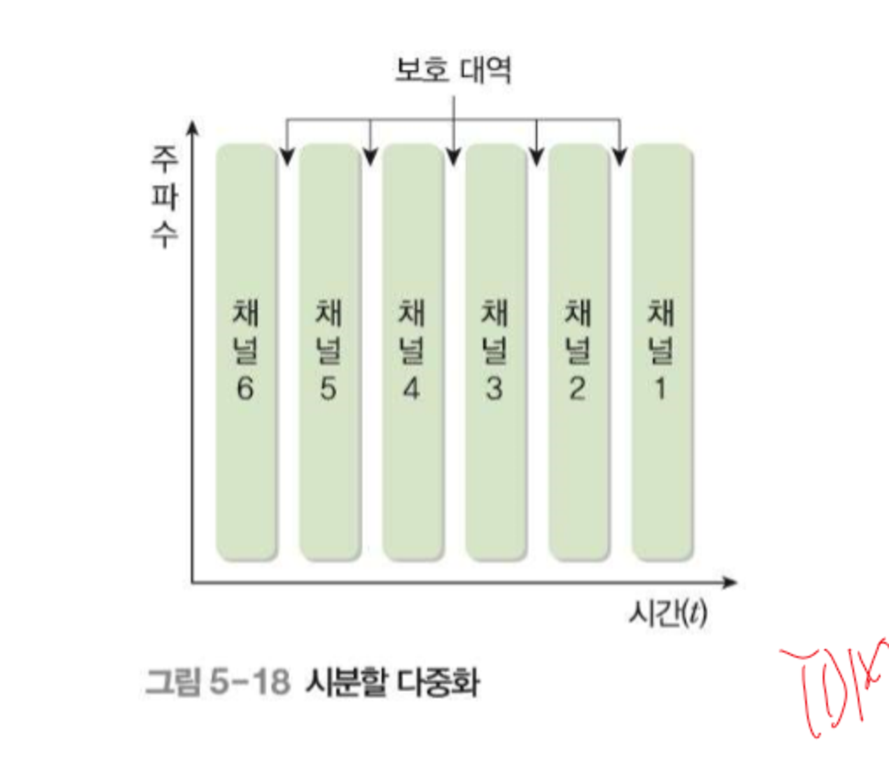 - 채널에 할당된 데이터 전송 허용시간을 일정한 시간 슬롯으로 나누고 채널도 다시 부채널로 나누어 각 시간 슬롯을 부채널에 순차적으로 할당해 사용하는 방식