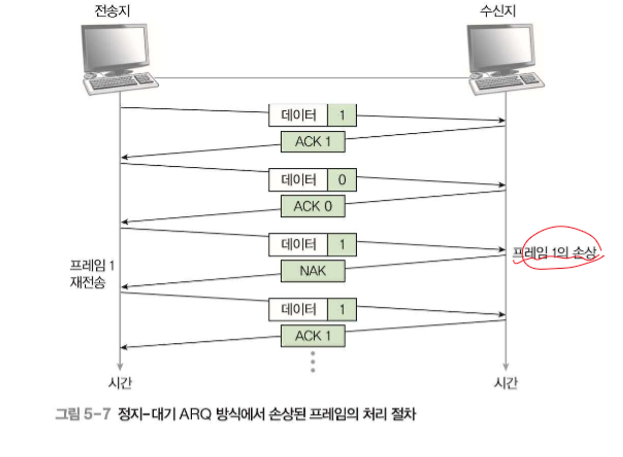 - 데이터 프레임이 손상되었다면 이에 대한 오류제어 메시지를 전송