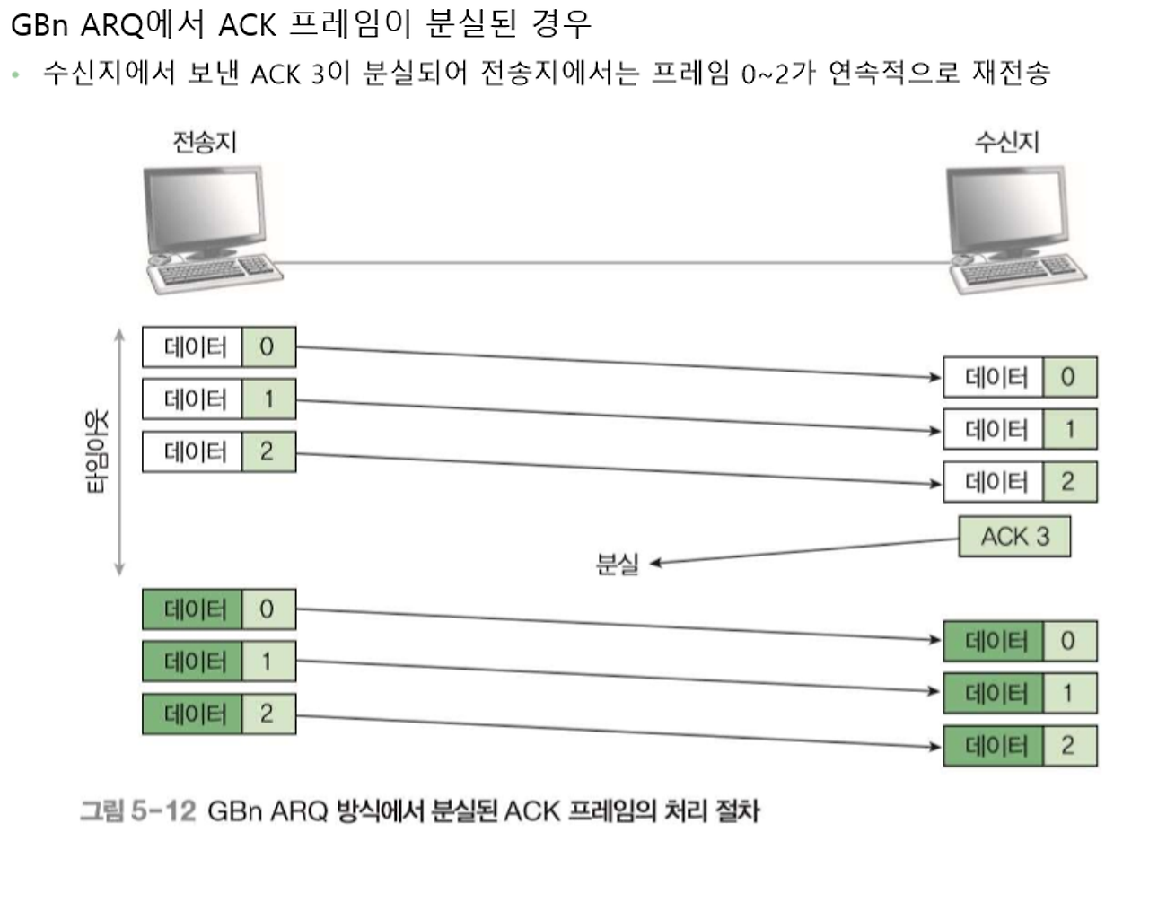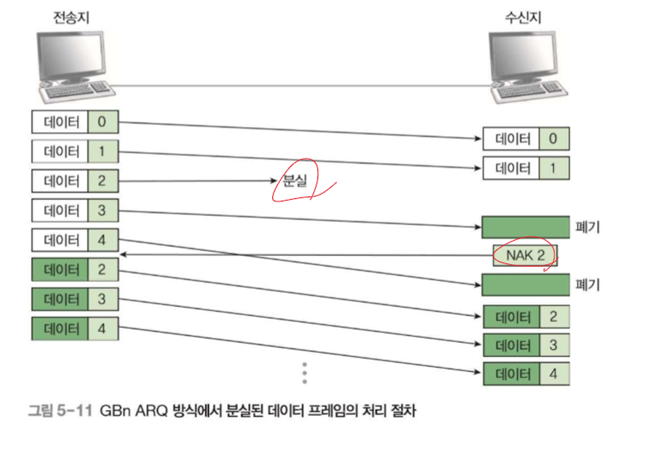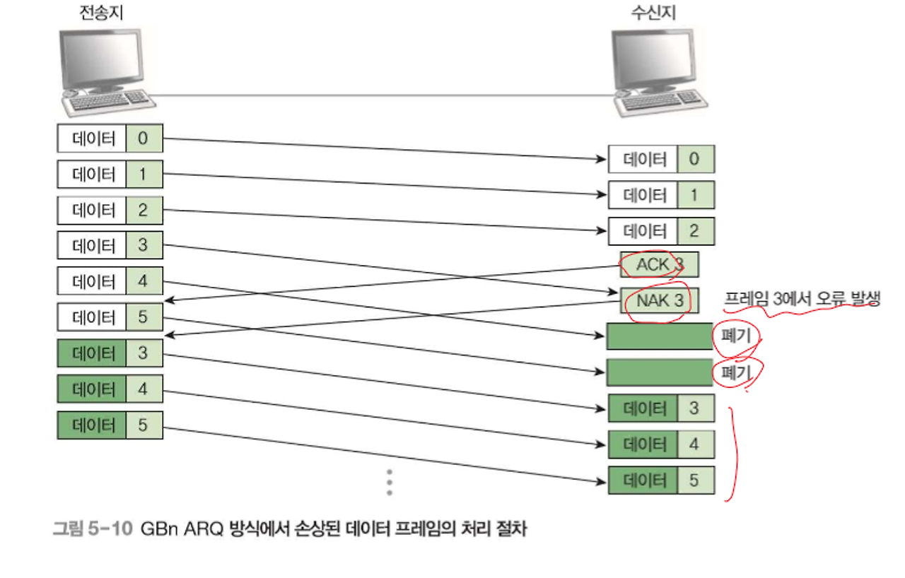 - GBn ARQ 방식 : 구조가 간단하고 효율성이 향상되어 가장 널리 사용