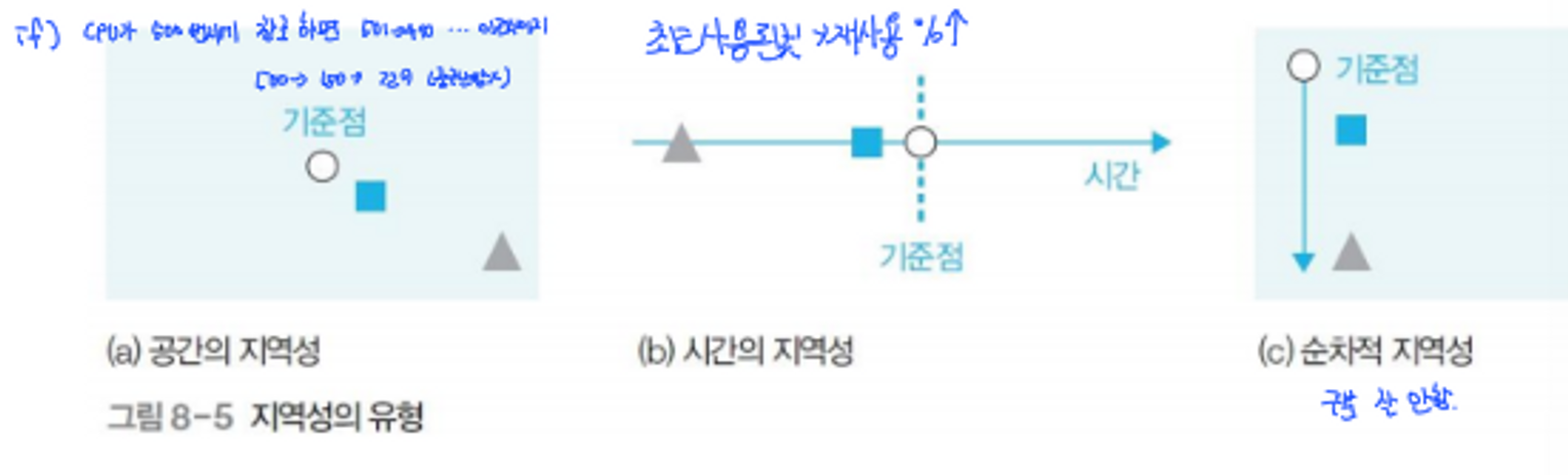 - 공간의 지역성, 시간의 지역성, 순차적 지역성으로 나눔