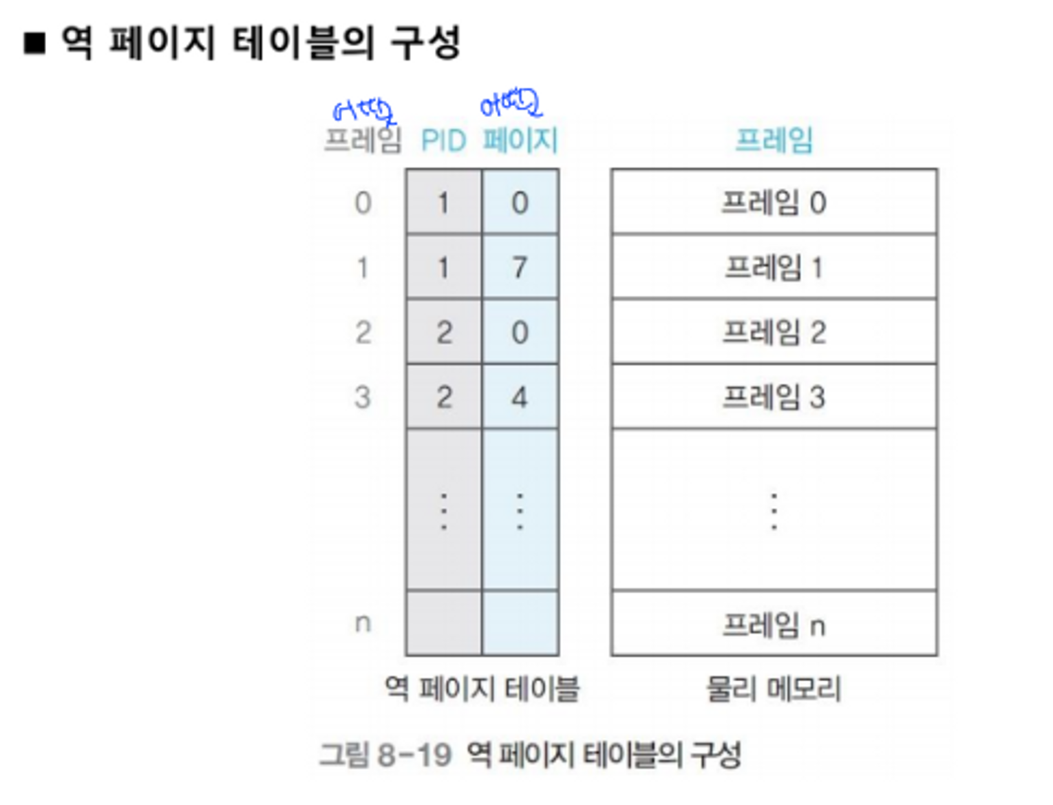 - 역 페이지 테이블(invert page table) 방식은 기존 페이징 방식과 반대로 페이지 테이블 구성