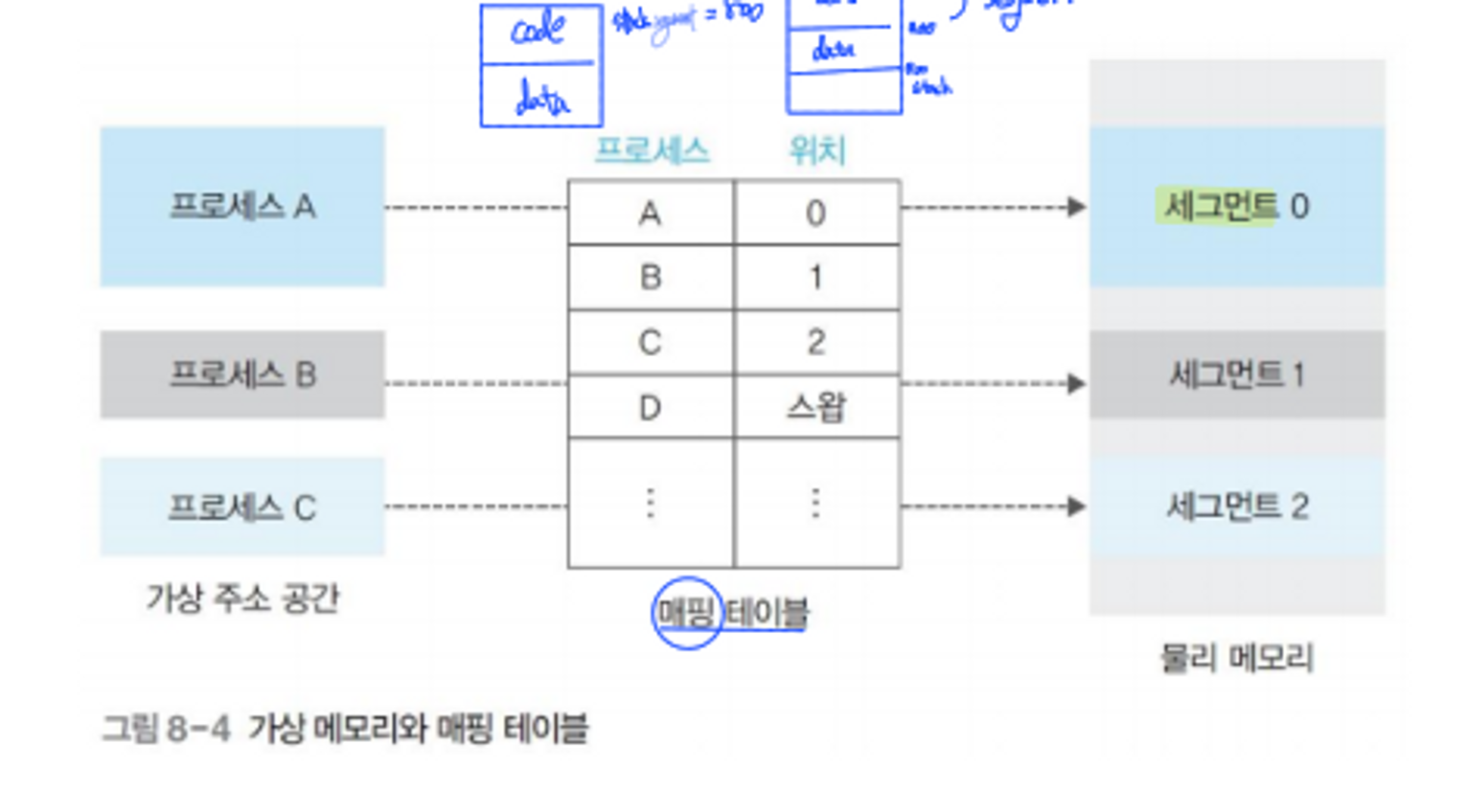 - 세그먼테이션 기법에서도 물리 메모리가 부족할 때 스왑 영역을 사용