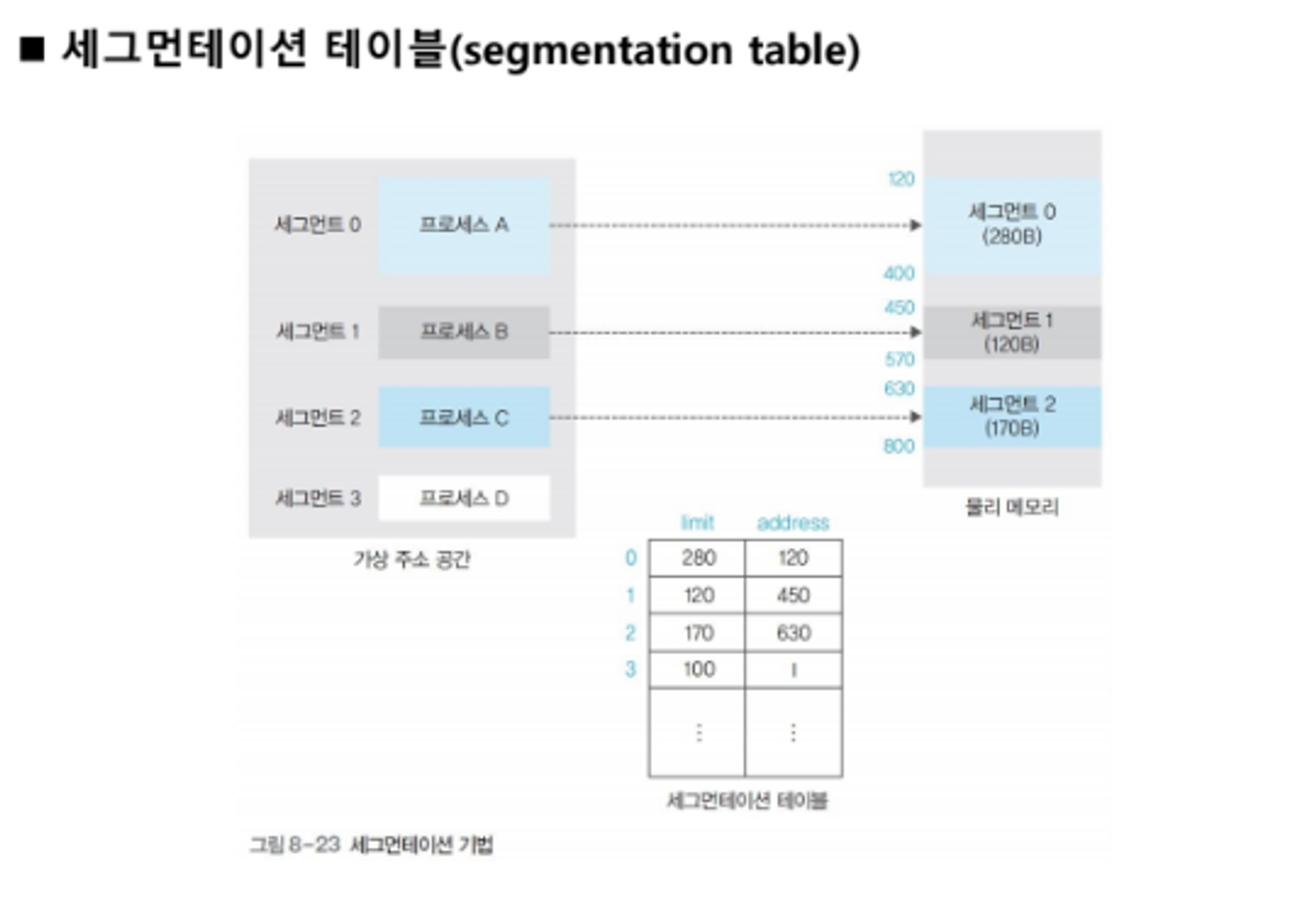- 세그먼테이션 테이블(segmentation table) (가변 분할 방식!!)