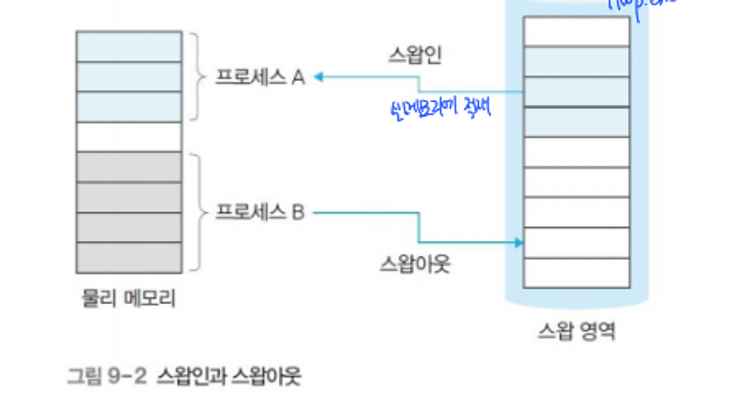- 메모리가 꽉 차서 스왑 영역으로 옮겨 온 경우