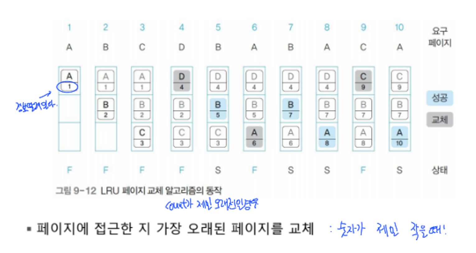 - 최근 사용된 페이지는 놔두고 오래전 사용된 페이지를 대상 페이지로 선정