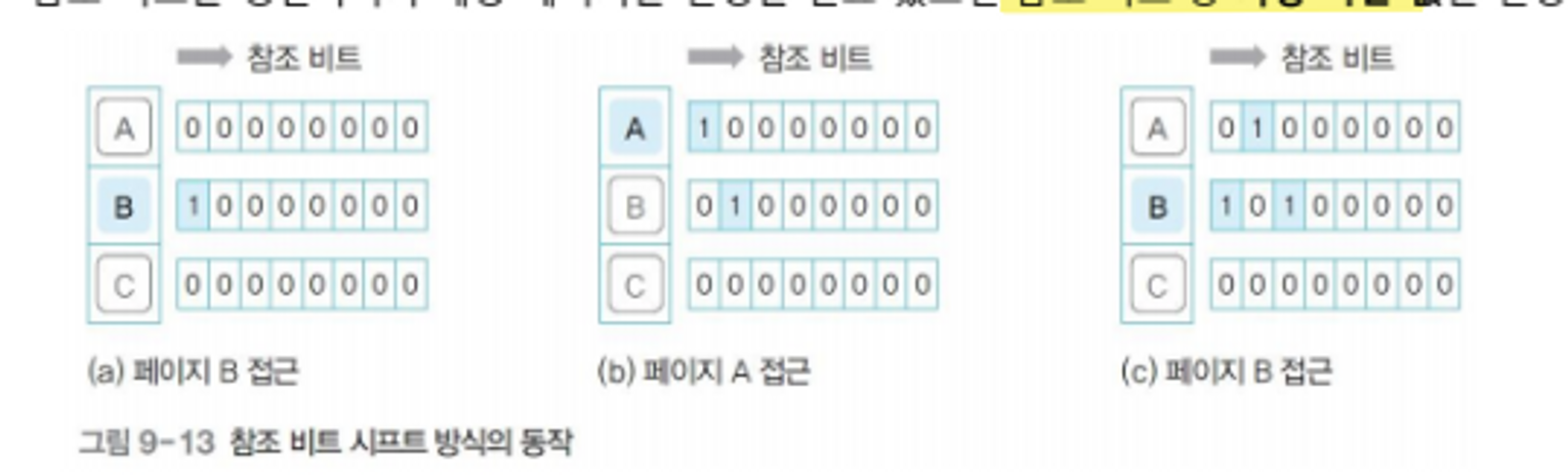 - 참조 비트는 주기적으로 오른쪽으로 한 칸씩 이동(shift)