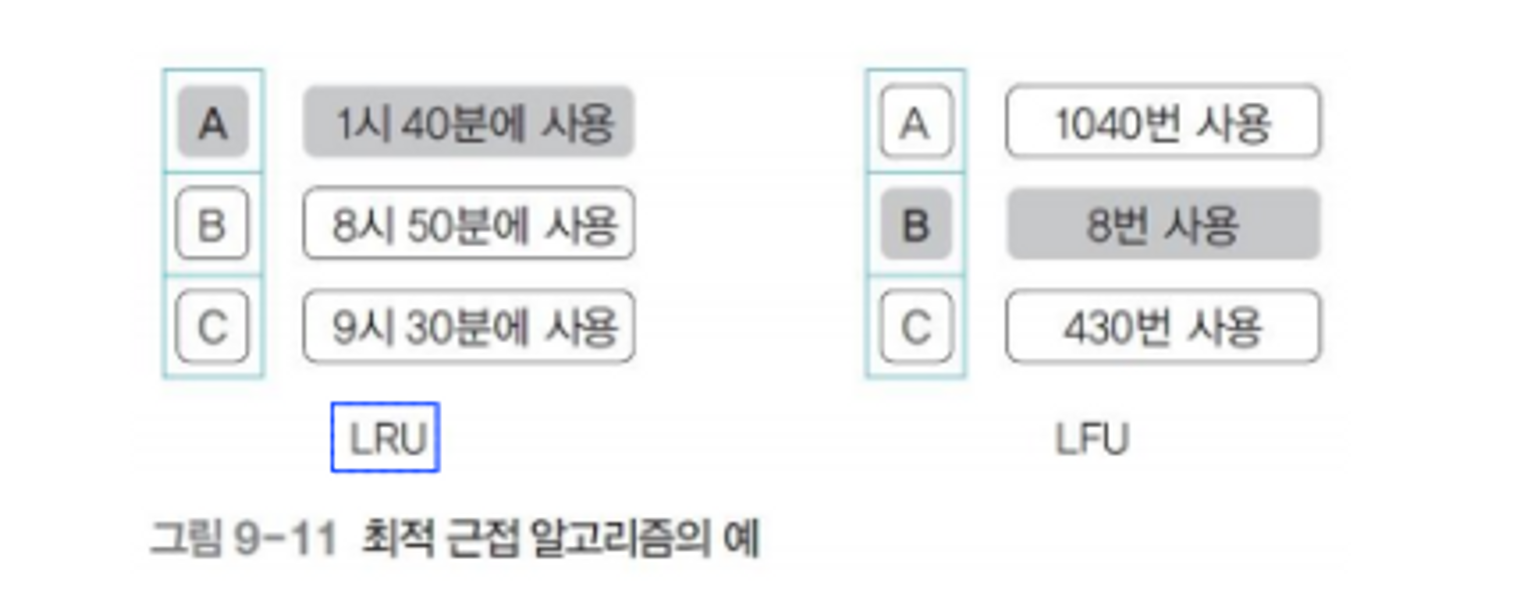 - LRU(Least Recently Used) 페이지 교체 알고리즘: 페이지에 접근한 시간을 기준으로 대상 페이지 선정