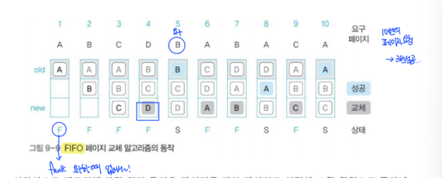 - 페이지 교체 알고리즘(page replacement algorithm)