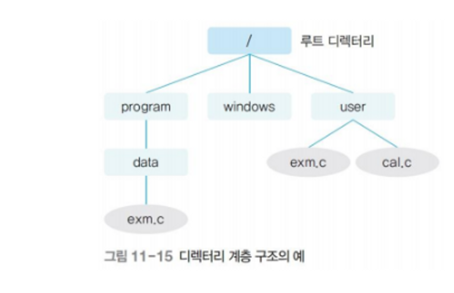 - 루트 디렉터리를 시작점으로 여러 단계의 디렉터리가 가지처럼 뻗음. 트리 디렉터리 구조라고도 함