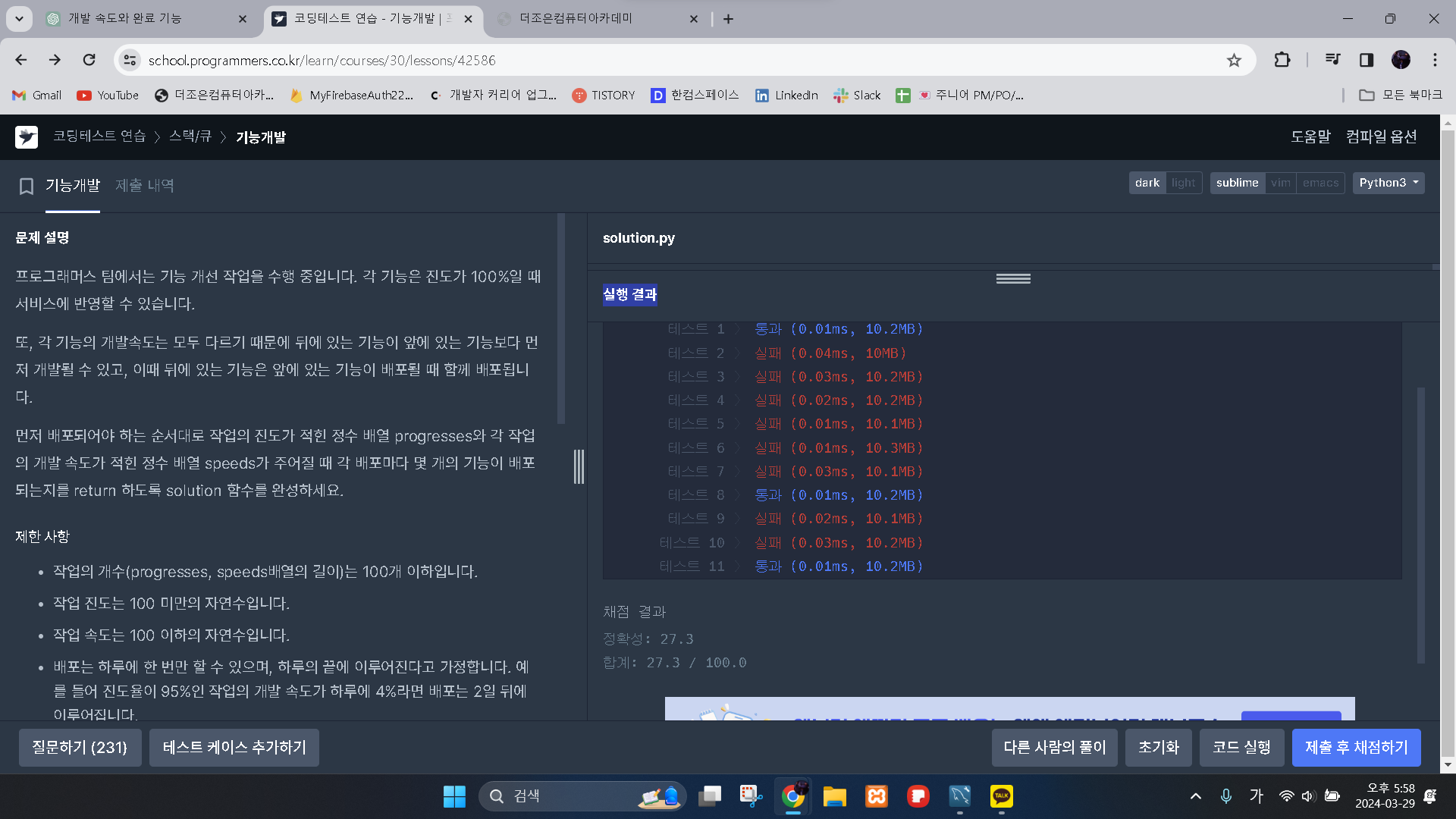 그리고 프로그래머스에 넣는 순간!!! 정말 너무하게도 많이 틀렸다..