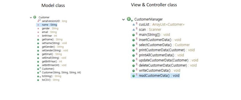- 고객의 정보를 입력 받아 고객 객체에 저장하고, 고객 관리 프로그램은 고객의 정보를 리스트에 저장, 조회, 수정, 삭제할 수 있는 기능이 있습니다.